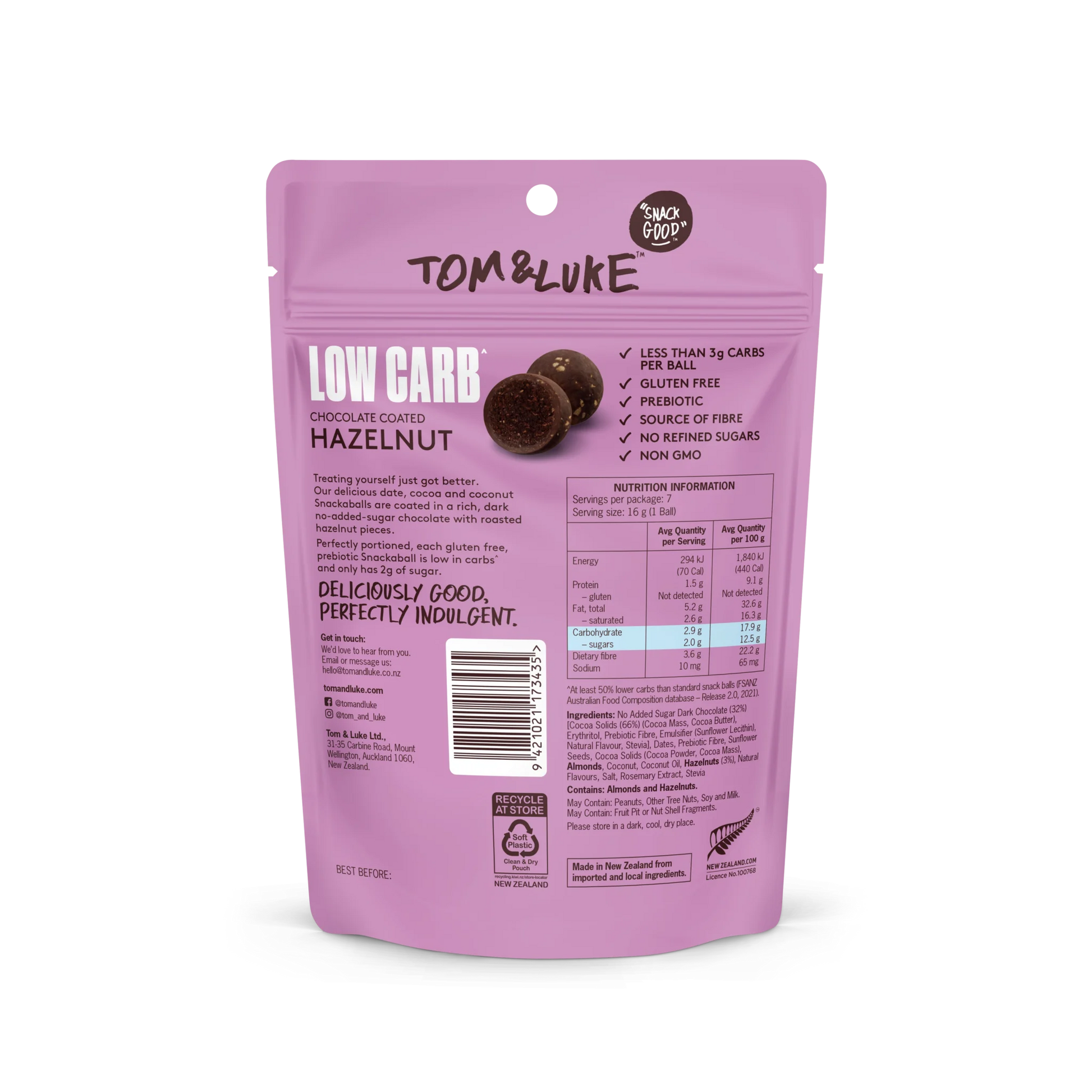 Tom & Luke Snackaballs - Low Carb - Hazelnut - 9 Pouch Box